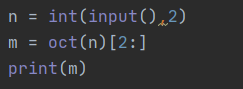 oct(n)을 출력하면 앞에 《0o》 문자가 붙어서 2번째 인덱스부터 출력해주면 된다.