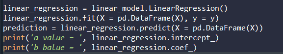 linear_regression.fit() : 선형회귀분석 모델에 맞게 학습하는 함수