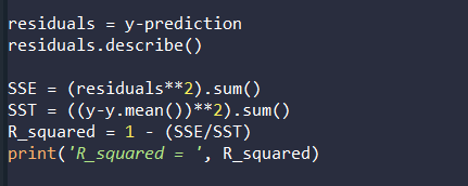 - SST : 결정계수 값을 구하기 위해 필요한 SST 값을 계산 후 저장한 변수
