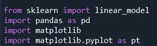 linear_model: sklearn 패키지에서 제공하는 선형회귀분석을 할 수 있게 도와주는 모듈