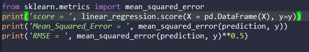 - R_squared : 적합도 검증을 위해 필요한 결정계수 값을 계산 후 저장한 변수